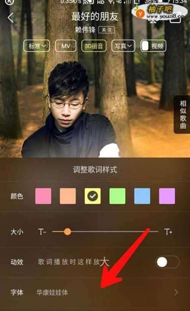 5在歌词样式里面有一个“字体”点击一下,如图所示