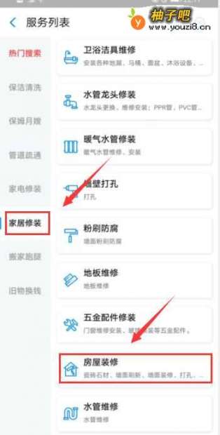5服务列表选择“家居修装”点击“房屋装修”