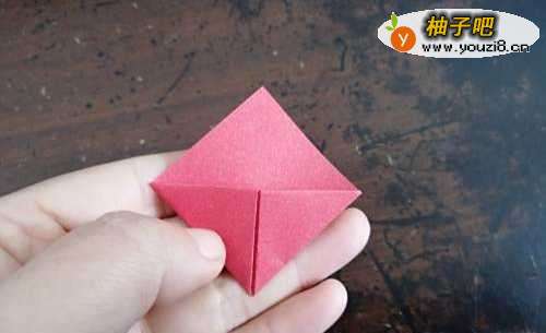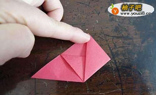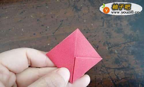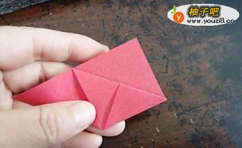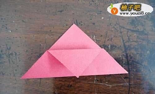 推荐使用7.5*7.5的彩纸,太小了就不太好用了。先把彩纸的两角对折。