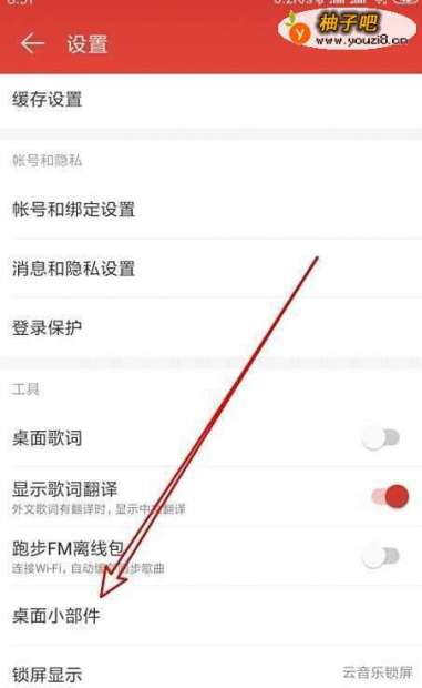 4然后在打开的网易云音乐的设置页面中点击“桌面小部件”的菜单项。