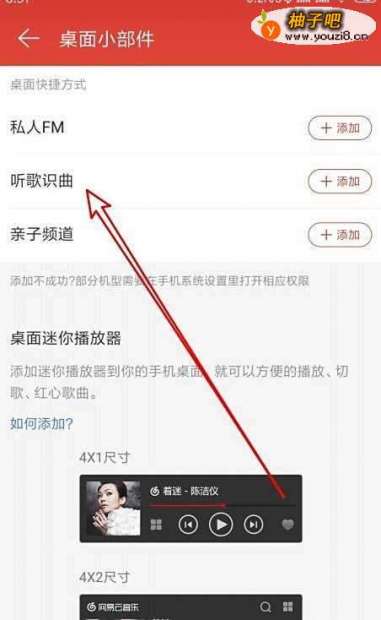 网易云音乐怎么样把听歌识曲添加到手机桌面