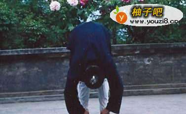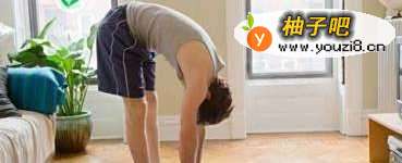 4双手攀足尽量达到后仰的最大程度。稍停片刻,随即身体前屈,双手下移,让手尽可能触及双脚,再稍停,然后恢复原来体位。可连续做10次~15次。