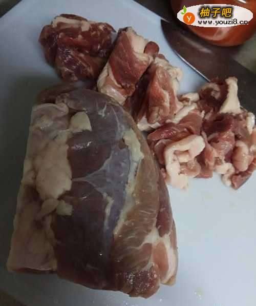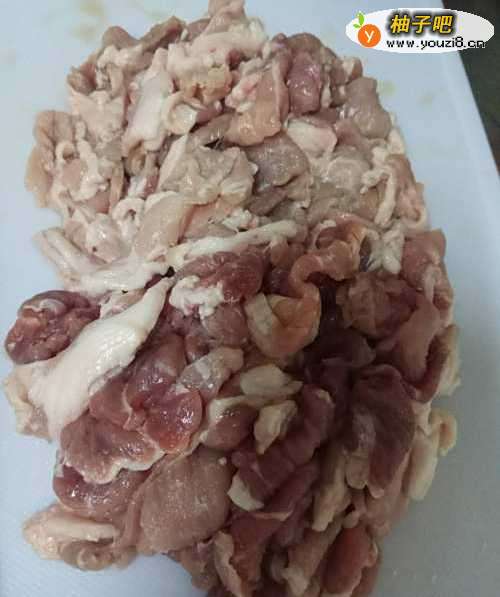 2青辣椒清洗干净后,去籽后切丝。猪肉切成薄片备用。