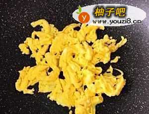 6接着加入黄瓜片和鸡蛋翻炒,加入一小勺盐调味。