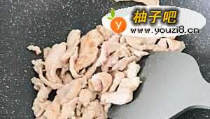 3锅内再倒入适量油把腌好的肉片下锅炒至发白盛出。