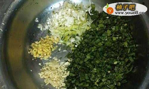 葱姜蒜切碎。