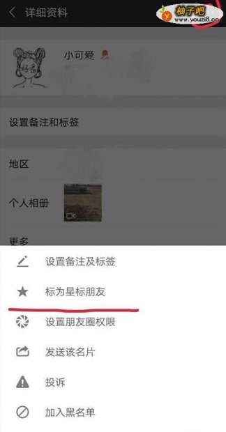 5标为星标朋友以后就能在好友的资料旁边看到有一个星星的图案了