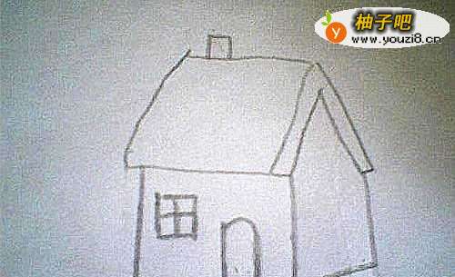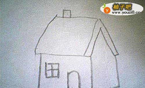 9房子后身上盖处画出来烟囱的线条,这幅图画就画完了。