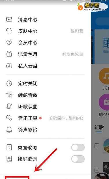 3之后,会从左边移出一个新的界面,在这个界面之中,我们找到左下方的设置按钮,点击它进入。
