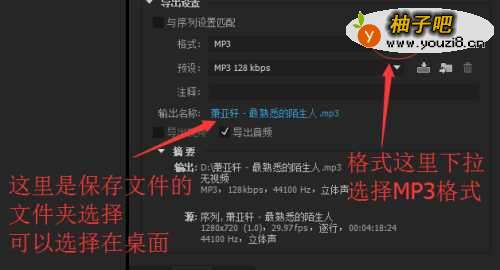 8参数设置,下拉框选择mp3就可以了,设置好保存的文件夹,方便查找的话,保存桌面最好,然后点击导出,最后就可以看见你转换完成的mp3格式文件了,可以保存电脑,也可以保存到手机上,这些看起来复杂,多操作几遍就会了,相信朋友们都可以的,试试吧!