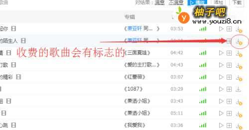 首先,我们打开播放器,随意搜索一些歌曲,就会发现有收费的标志