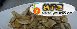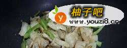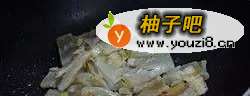 5锅里放油烧热,下大葱炒香,然后放入咸鱼干翻炒