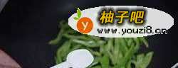 7锅里再放油,下青椒炒至微软,少量盐给青椒调味