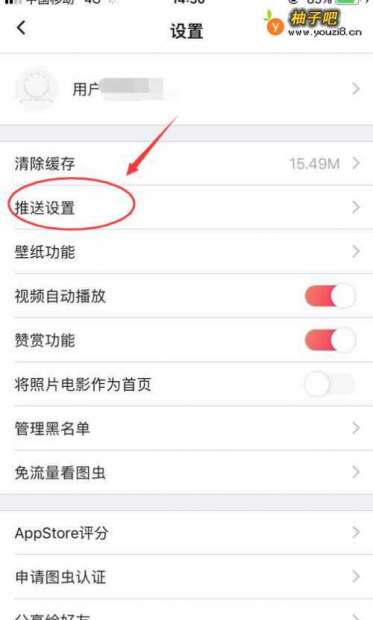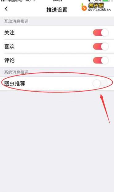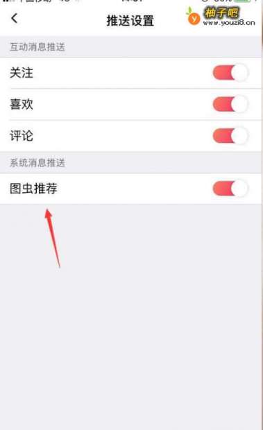5打开推送设置页面,这里就可以看到一个图虫推荐,如下图