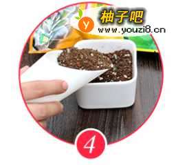 4倒入适量的培养土约占花盆的3/4,轻轻压实