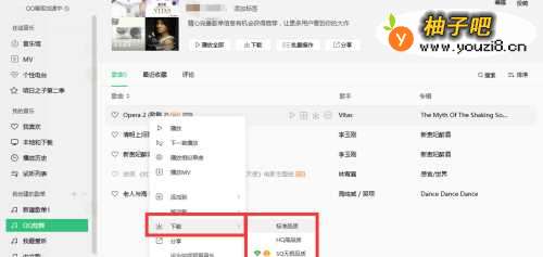 2接下来我们右击自己想要下载的歌曲,此时会弹出一个下拉框,下拉框中,我们选择下载,然后下载,我们想要下载音乐的音质。