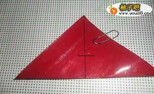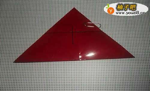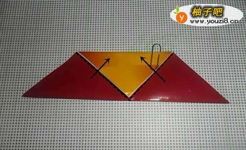 3如图所示,将上面三角的上下两层一起向下对折。