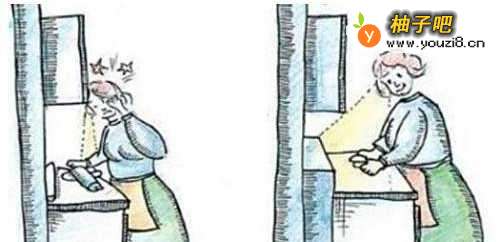 中国人都喜欢爆炒,厨房是油污最大的地方,橱柜设计好后,柜门颜色尽量选择深色,耐油污!