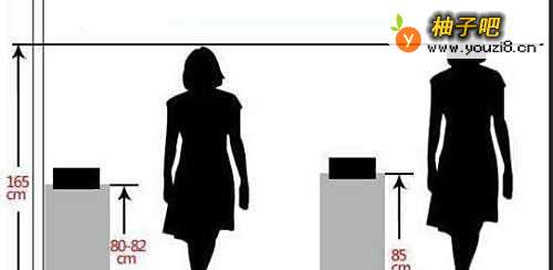 吊柜高度就要因人而异了!顶部一般是顶到棚顶,长度就是从棚顶到使用方便的距离了!