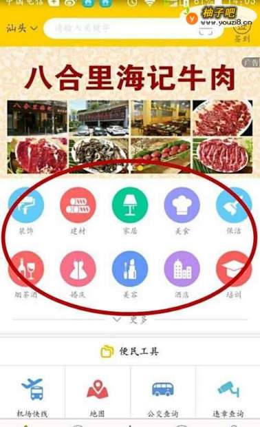 打开,里面有各种领域的商家可供查询,用户可随时进入优店,浏览商家信息;