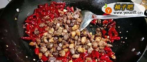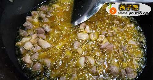 4起油锅倒入油烧热,放入腌好的鸡肉丁