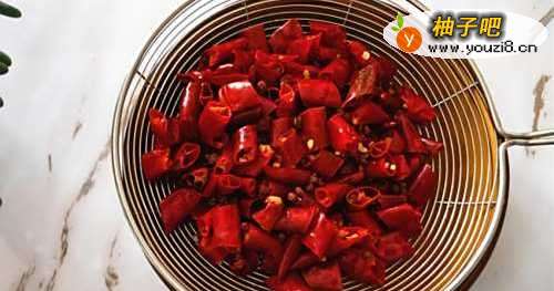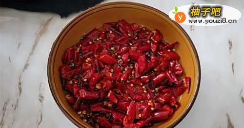 2将辣椒花椒放碗中,加入热水泡约2分钟