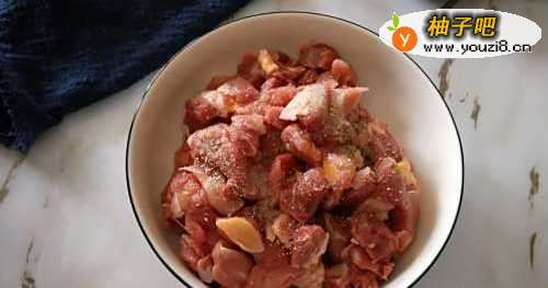 鸡丁中放入盐,料酒,胡椒粉拌匀腌制15~30分钟