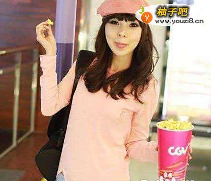 女生喜欢粉色系的事物似乎都是与生俱来的!粉色除了能给人带来愉悦的心情外,同样也具有掩饰年龄的效果哦!一款简单的上衣,在下摆处独具匠心的剪裁,让造型更显特别。搭配浅色系长裤和较深粉系的贝蕾帽,粉嫩指数100%。