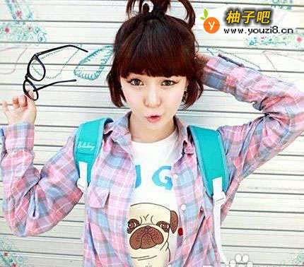 6清新的格子衬衫很适合个性简单的女生,如果性格较为不拘的MM,不用将扣子全部扣全,里面搭配一款较为可爱的T恤,这样更加的卡哇伊哦!利用清爽的短发在头顶扎出小发束,整体感觉都呈现出俏皮感。