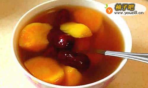 具有温经散寒的作用,尤其是痛经的女性,可以食用。将干姜、大枣洗净切碎,大枣去核,和红糖一起煎,喝汤,吃大枣。