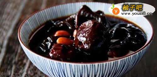 具有补中益气、养血止血、美肤的作用。将黑木耳和红枣分别洗净,然后去掉红枣的核,加水煮沸,去渣服用。