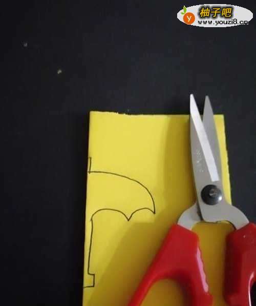 5第五步,接着用剪刀把画好的雨伞剪裁出来。