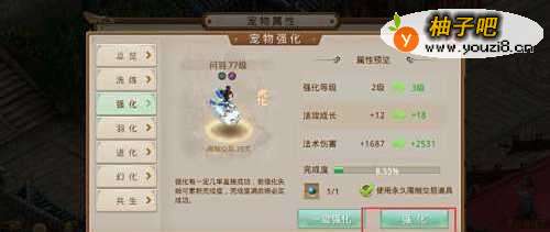 1、首先打开问道手游,点击进入游戏。2、然后点击右上角宠物。3、然后在宠物界面点击成长。4、然后点击强化。5、最后消耗强化丹点击强化即可。