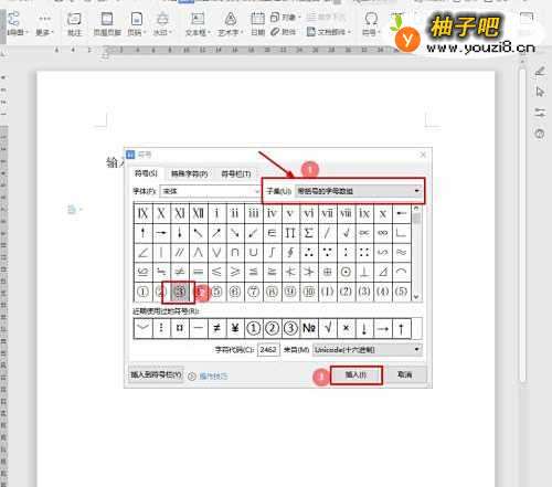 4在“字母数组”界面,选择【符号:③】,点击【插入】即可。