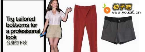 对于轻松的周末,你可以选择低腰紧身牛仔裤。短裤会让你看起来时髦成熟。合身的铅笔裙也将会让你的约会更轻松。