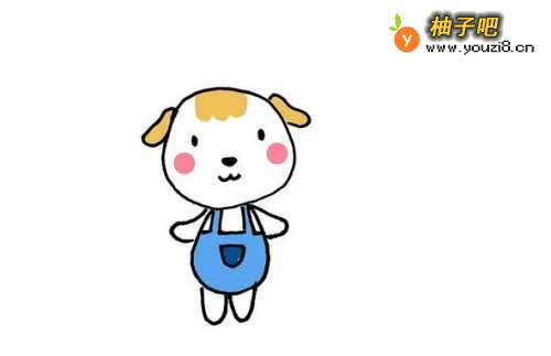 6第6步,最后我们给小狗涂上颜色,它的耳朵是黄色的,衣服是蓝色的,还有两点红晕,效果如图所示,
