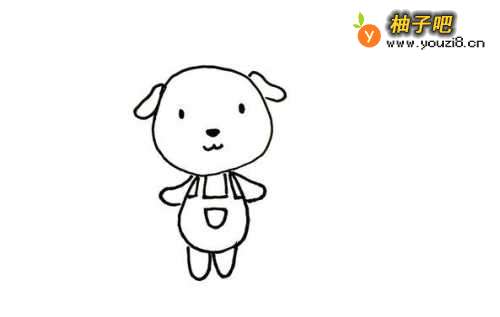 4第4步,然后画他的衣服,我们给他穿的是一个背带裤,所以需要把他的两个背带画出来,背带裤的正前方再画一个小布兜