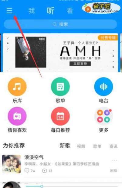 2音乐播放器界面里,看到【三白线】,单击下,如图。