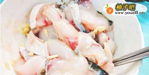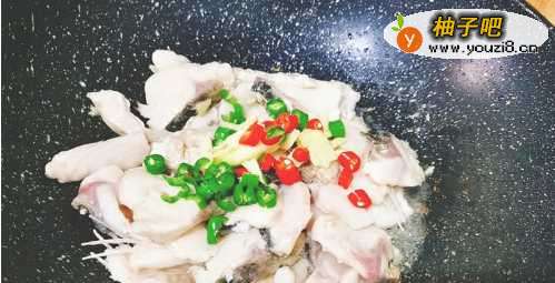3起锅烧油,浇六分热时把草鱼片放入锅翻炒至鱼肉变成白色。