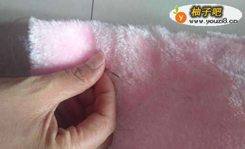 5在距离毛毯边2厘米的地方,用针线把两片毛毯缝起来。四边都要缝,每边都要留2厘米宽。