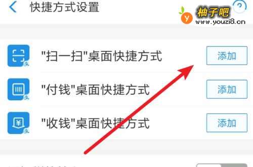 5看到这里有一个扫一扫的快捷方式,点击添加按钮。