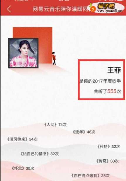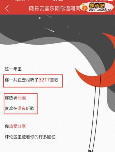 4现在,你就可以查看这一年一共听了多少歌,喜欢的歌曲风格,经常听歌的时间