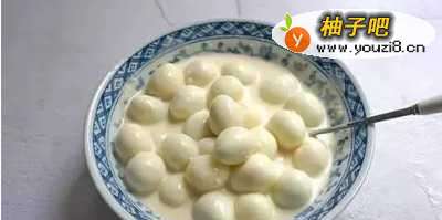 33、将鹌鹑蛋放入面浆中裹均匀。如果面浆太稀挂不住糊的话,可以再加点面粉在里面就行。