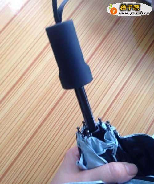 6接下来入伞套,重点!先入一点点大概1CM左右,然后沿同一个方向旋转进入,我喜欢顺时针,最后慢慢将整把伞滑入,形成图2的样子。