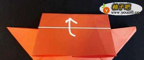 6按着上图2划线的位置,将上面的边向下对折起来。对折后的效果参见下图1所示。然后再按着图1中划线的位置,将下面的边向上反折过去。