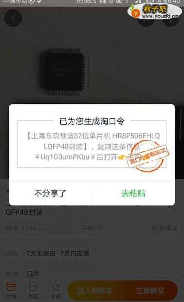 5现在就成功的生成了淘口令,点击“去粘贴”