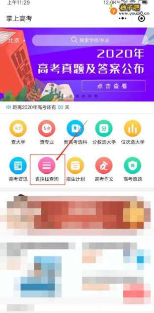 4在小程序页面中,点击省控线查询。