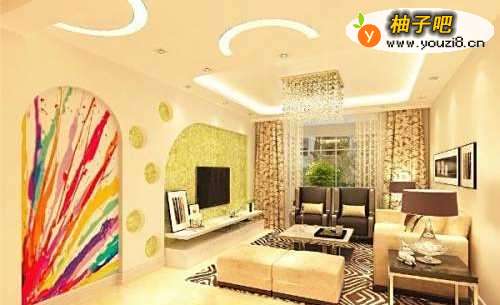 首先就是房间中最先见到的空间“客厅”。客厅一般都是采用二级跌级吊顶。