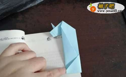 4把上面的角向左折,如图一。然后再把角向回折,如图二。