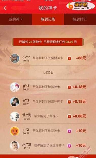 7卡片解封收获:卡片解封后,里面可能有888元,88元,10元购物津贴,其他小额面值,店铺优惠券等内容。当然,也有概率什么也没有。